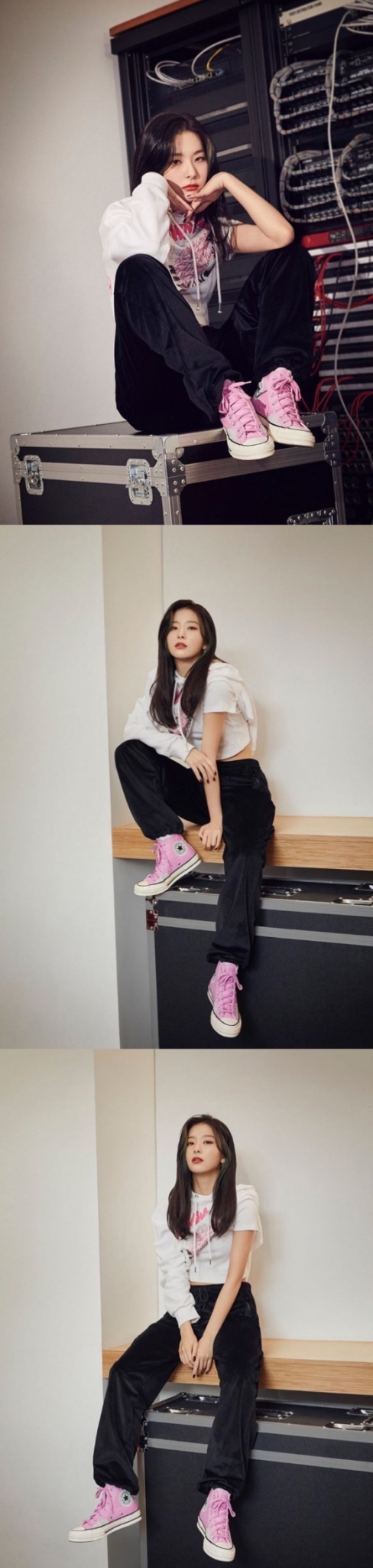 공개된 사진 속 핑크색 운동화를 신은 채 여전한 미모를 뽐내고 있는 슬기의 모습이 담겨있다.