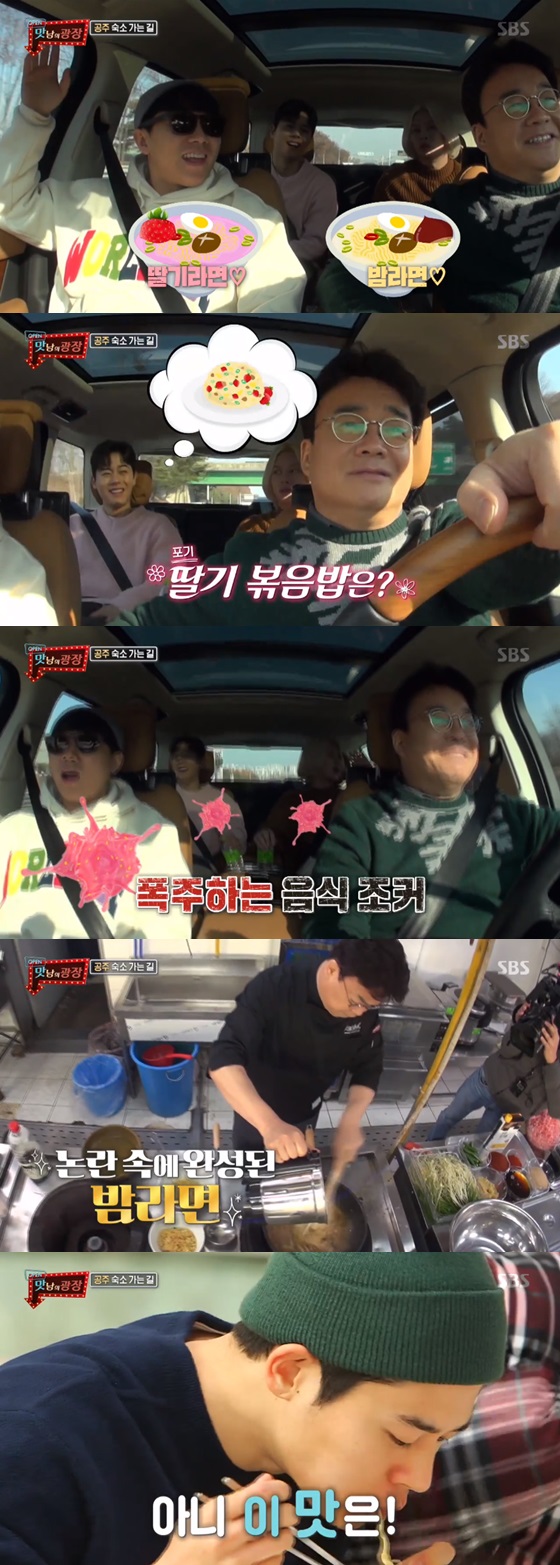 백종원은 웃으며 "딸기 라면 먹을래 밤 라면 먹을래?"라고 물었고 제자들은 "둘 다 별로 안 땡긴다"고 답했다. 이에 백종원은 "딸기잼에다 비빔 라면은 어떠냐"는 물음으로 장난기를 폭발시켰다. 그는 "그래도 한번 만들어 봐야지 뭐"라며 의연한 태도를 보였다.