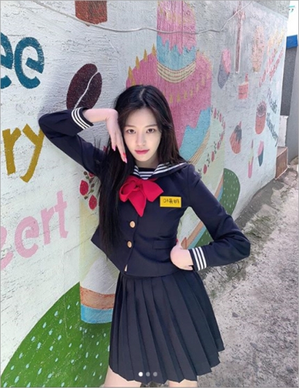 공개된 사진 속 이유비는 교복을 입고 골목에서 포즈를 취하며 카메라를 응시하고 있다. 그는 검정 긴 생머리와 뚜렷한 이목구비로 청순한 미모를 뽐내고 있다.