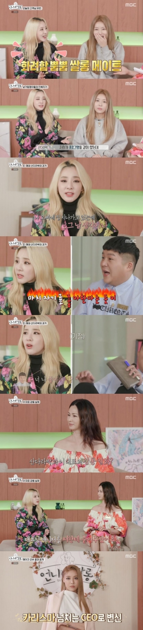 24일 오후 방송된 MBC 예능 프로그램 '언니네 쌀롱'에서는 의뢰인 유빈과 쌀롱메이트 산다라박이 다양한 토크를 쏟아내는 모습이 담겼다.