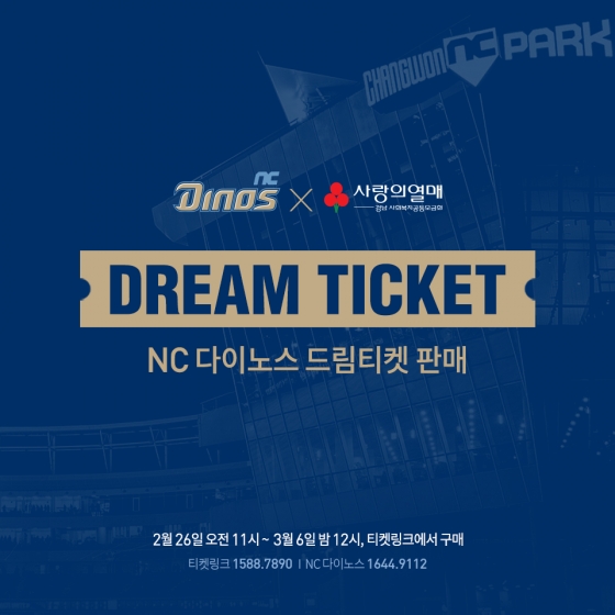 NC 다이노스의 새 시즌 홈경기 티켓을 어려운 이웃들에게 기부하고 싶은 팬은 2월 26일부터 3월 6일까지 드림티켓을 살 수 있다.
