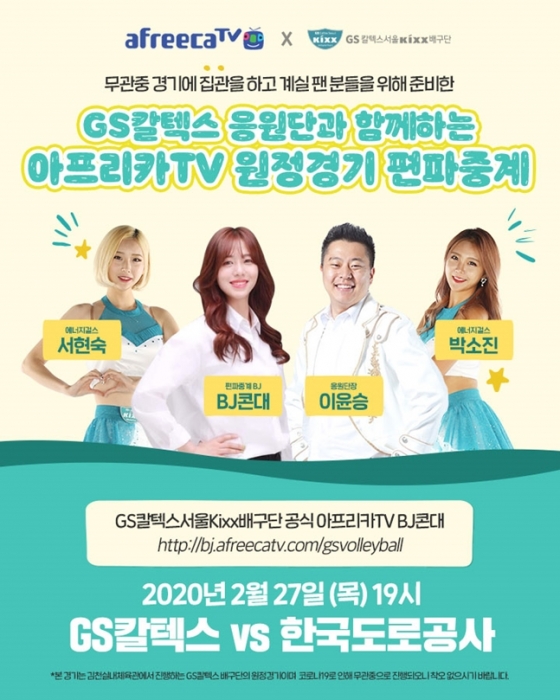 GS칼텍스가 27일 한국도로공사와의 원정경기에 앞서 아프리카 TV를 통해 GS칼텍스 '응원단'과의 콜라보 편파 중계방송을 선보인다.