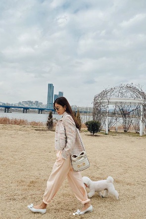 지난 26일 기은세는 자신의 인스타그램에 "미팅 끝나고 구름이(반려견)랑 한강에서 바람 쐬기. 사진 찍을 때 마스크 벗었어요"라며 반려견과 함께 산책하고 있는 사진을 게재했다.