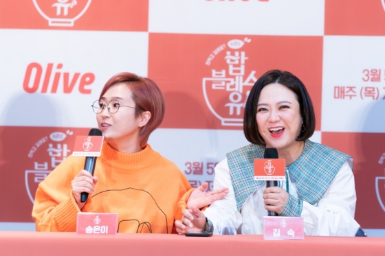4일 오전 VIVO 유튜브 채널에서 올리브 예능프로그램 '밥블레스유2' 제작발표회가 온라인 생중계가 진행됐다. 황인영PD, 송은이, 김숙, 박나래, 장도연이 참석했다.