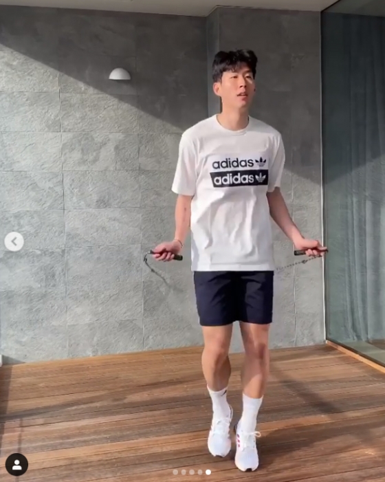 손흥민은 31일 자신의 인스타그램에 사진과 영상을 게재했다. 사진 속 손흥민은 다양한 자세로 운동을 했다. 또한 줄넘기하는 모습은 영상으로 찍었다. 손흥민은 오른팔 골절에서 회복한 듯 자연스럽게 줄넘기했다.