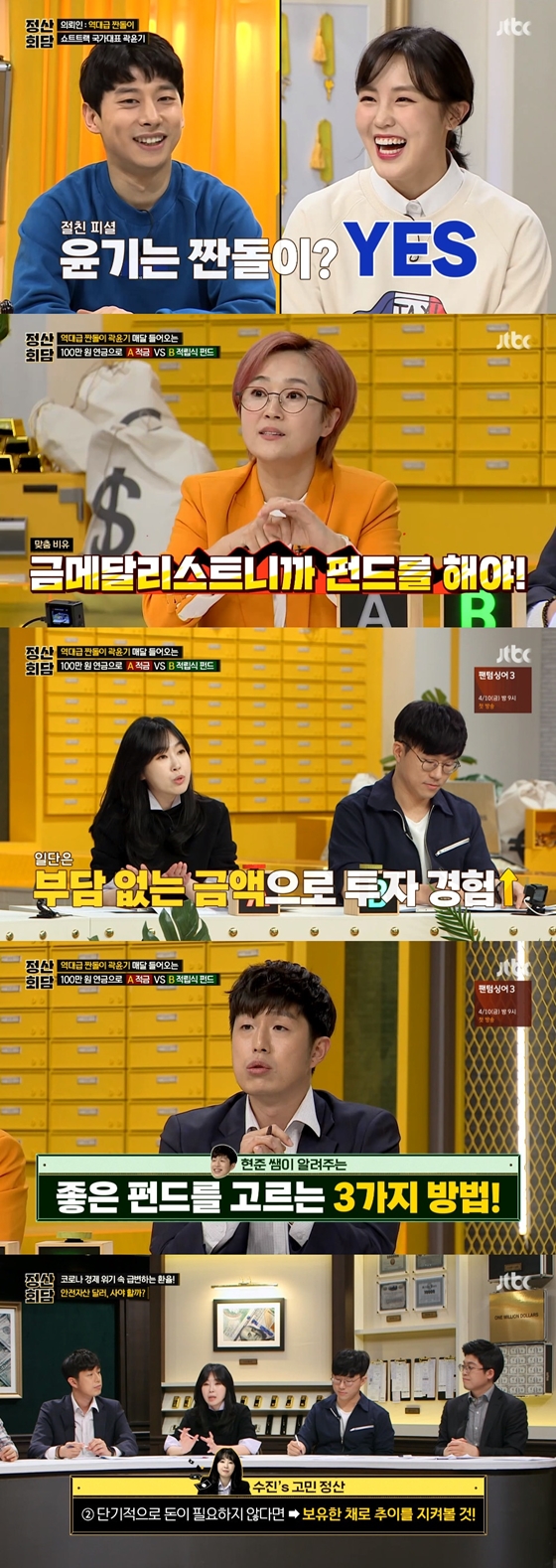 송은이는 "그냥 곽윤기가 아니라 쇼트트랙 금메달리스트니까 펀드를 해야 한다. 짜릿한 막판 스퍼트를 느껴봤고 뒤에서 다른 선수가 밀어주는 탄력을 받아본 사람이다. 적금이 기초체력훈련이라면 펀드는 바람을 불어주는 거다. 의뢰인의 기질, 경험을 고려하면 무조건 펀드다"라는 적절한 비유를 들어가며 펀드 투자를 강력하게 권고했다.