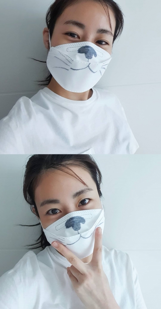 공개된 사진 속 강소라는 마스크를 쓴 채 포즈를 취하고 있다. 특히 마스크에는 동물의 코와 입, 수염이 그려져 있어 귀여움을 자아낸다.