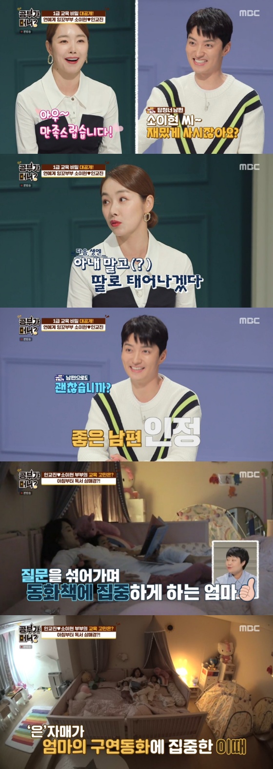 1일 오후 방송된 MBC 예능프로그램 '공부가 머니?'에서는 프로그램의 안방마님 소이현과 남편 인교진이 출연해 자녀 교육에 대한 고민을 털어놨다.