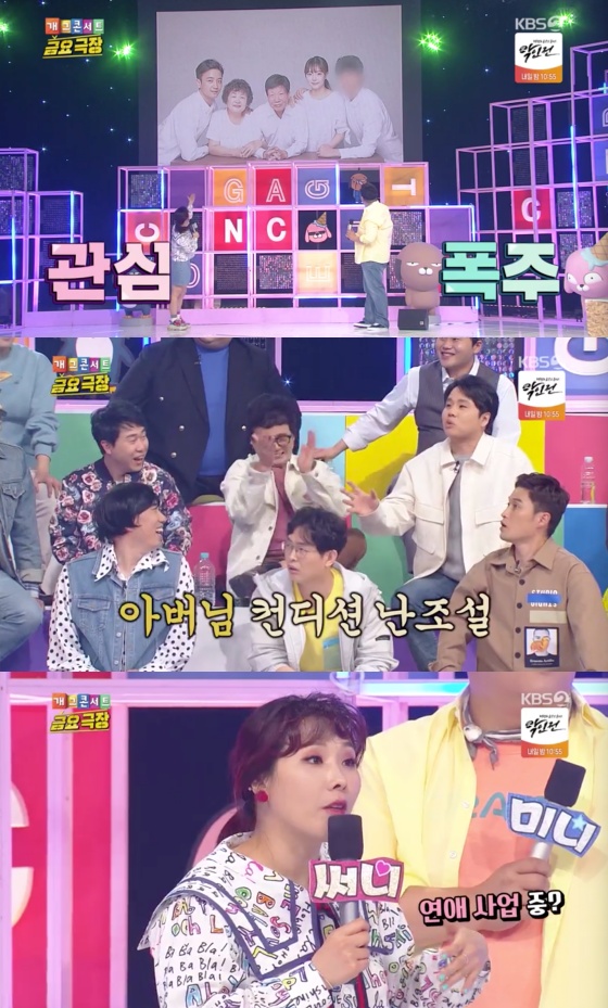 1일 오후 방송된 KBS 예능 프로그램 '개그콘서트'에서 신봉선이 정승환의 가족사진을 보고 정승환 동생에 관심을 보였다.