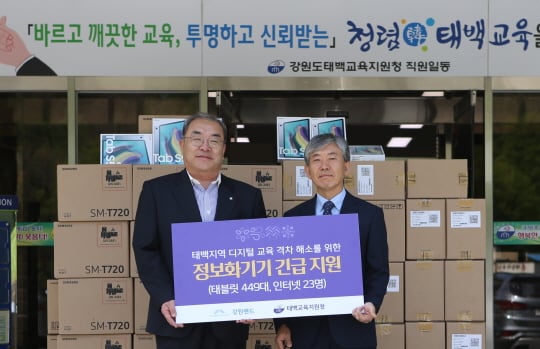 강원랜드가 8일 삼척교육지원청과 태백교육지원청을 방문해 폐광지역 학생들의 온라인 학습에 사용될 태블릿PC 1천여대를 전달했다.