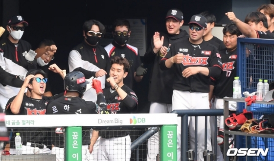 4회초에는 박경수, 배정대가 연속안타를 쳐 주자를 쌓았다. 강현우가 볼넷을 골라 베이스를 꽉 채웠다. 강민국이 유격수 뜬공으로 물러났지만 김병희 타석에 장성우가 대타로 등장해 좌익수 희생플라이를 쳤다. 심우준이 좌전 적시타를 때려 3-0으로 달아났다.