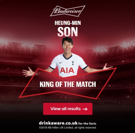 ‘킹 오브 더 매치’는 프리미어리그 공식 홈페이지에서 팬을 대상으로 투표를 받아서 뽑는다. 손흥민은 59.4%의 압도적인 지지를 받았다.