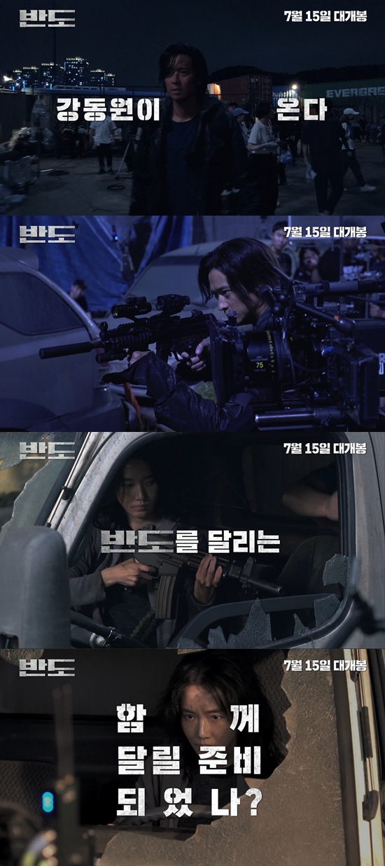 개봉 확정 소식과 함께 '반도가 온다'도 공개돼 기대감이 고조되고 있다. 반도를 종횡무진하는 강동원, 이정현, 이레, 이예원의 모습에 재치 만점의 카피가 어우러져 호기심을 자극한다. 빠르게 추격해오는 좀비를 피해 쉼 없이 달리는 모습부터 거침없는 사격, 시원한 카 체이싱 그리고 배우들의 케미까지 다양한 볼거리와 액션 등 촬영 비하인드를 미리 만날 수 있어 영화 '반도'에 관심이 더욱 높아지고 있다.