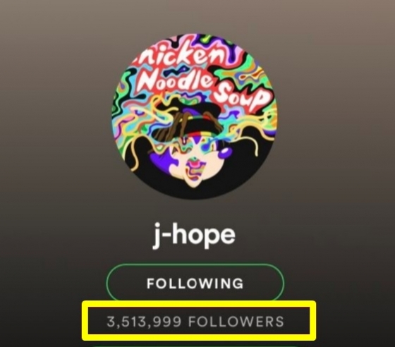 그룹 방탄소년단(BTS) 제이홉이 세계 최대 음원 플랫폼 스포티파이에서 팔로워 350만 명을 돌파하며 한국 솔로가수 최초 기록을 세웠다.