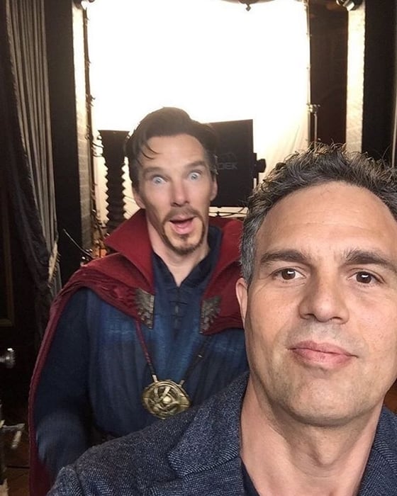 공개된 사진 속에는 익살스러운 표정의 베네딕트 컴버배치와 마크 러팔로의 모습이 담겼다. 그들은 각각 '헐크'와 '닥터 스트레인지' 의상을 입고 있어 눈길을 끌었다.