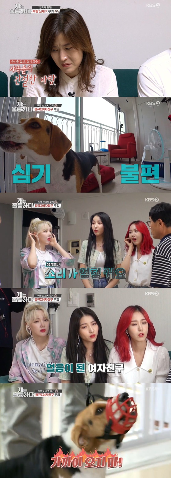 '개는 훌륭하다'에서 걸그룹 여자친구 멤버 예린, 소원, 신비가 '안락사' 위기를 겪은 '쿠키'의 집에 방문했다.