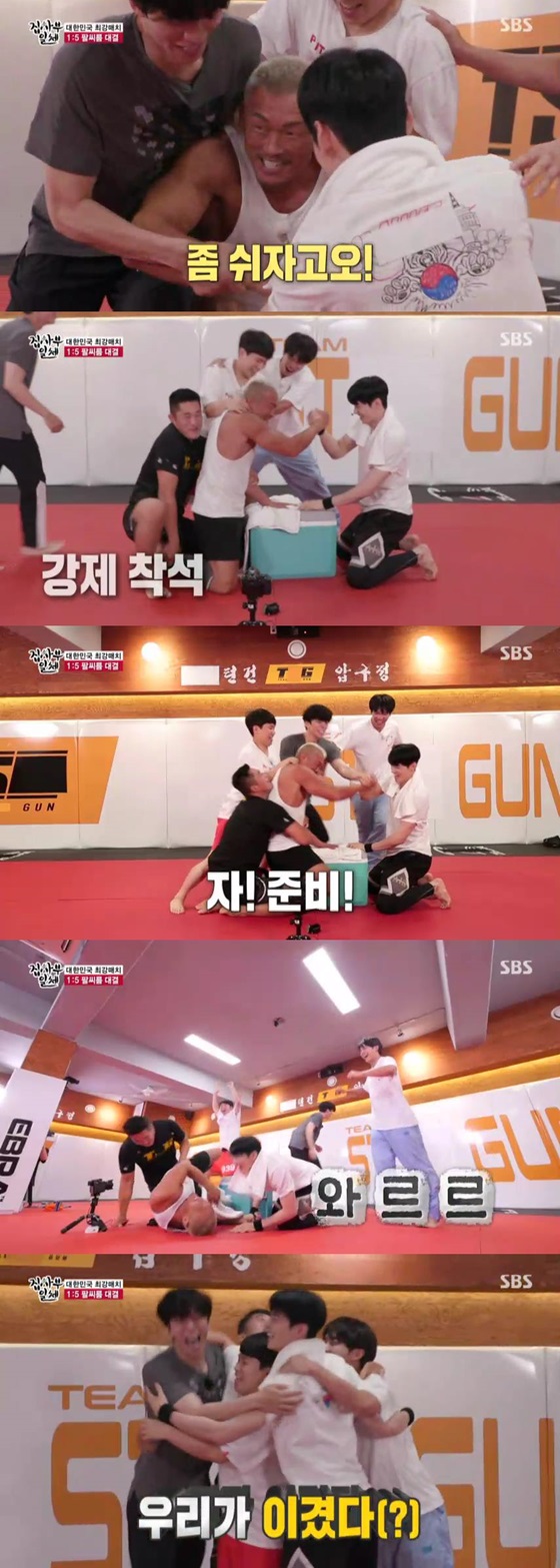 이어 멤버 전원과 추성훈의 5대 1 팔씨름 대결이 시작됐다. 추성훈은 자신있게 나섰지만, 멤버들은 추성훈에게 잠시 쉴 틈을 주지 않고 바로바로 경기를 이어갔다.
