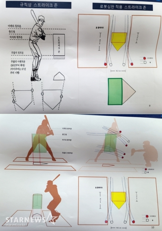로봇 심판을 처음 체험한 정은재(34) KBO 심판위원도 "(그동안) 상하 스트라이크 존의 경우 스트라이크 존을 통과한 뒤 끝에서 떨어지는 경우에 볼로 판정했는데, 로봇 심판은 스트라이크로 판정된 게 한두 개 있었다"고 말했다.