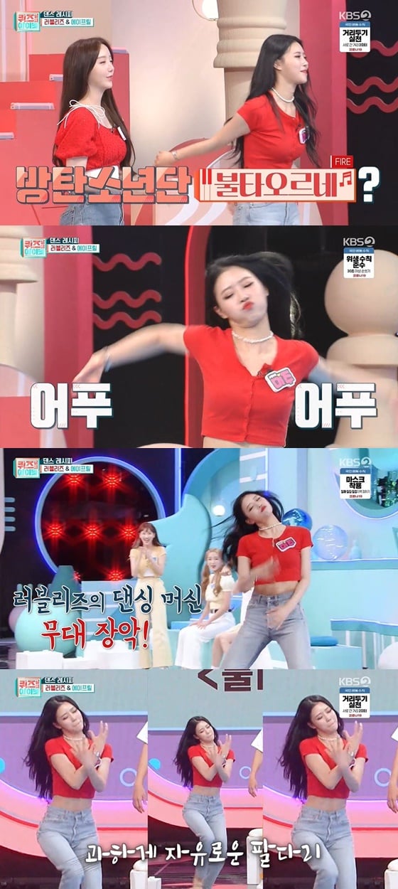 24일 오후 방송된 KBS 2TV 예능프로그램 '퀴즈 위의 아이돌'에서 러블리즈가 '아이돌'임을 포기한 댄스로 웃음을 선사했다.