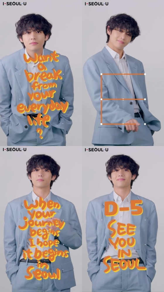 뷔는 감미로운 중저음으로 "평범한 일상을 탈출하고 싶다면 나와 함께 'I·SEOUL·U'의 E를 그려봐요. 여행이 시작되면 첫 번째 목적지는 서울이 되길 'SEE YOU IN SEOUL' 서울에서 만나요"라는 메시지를 전달해 팬들을 설레게 했다.