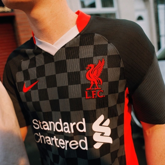 이번에 공개된 리버풀 써드 유니폼은 검은색 바탕에 정사각형 체스 무늬를 새겼다. 소매와 옆구리에는 빨간색과 하얀색을 조화 놓게 넣었다.
