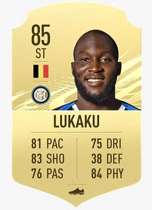 최근 FIFA21 제작사인 EA는 게임에 등장하는 실제 선수들의 능력치를 발표했다. 이에 따르면 루카쿠는 전체 평점 85를 받았다. 전체 66위에 해당하는 수치다. 전체 1위는 리오넬 메시(33·바르셀로나)의 93이었고 크리스티아누 호날두(35·호날두)는 92로 2위였다. 손흥민(28·토트넘)은 루카쿠보다 높은 87(전체 35위)이었다.