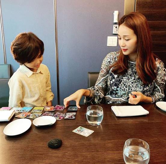 공개된 사진 속에는 고지용 아내 허양임과 아들 승재 군이 최현석 셰프의 식당에서 카드놀이를 하고 있었다.