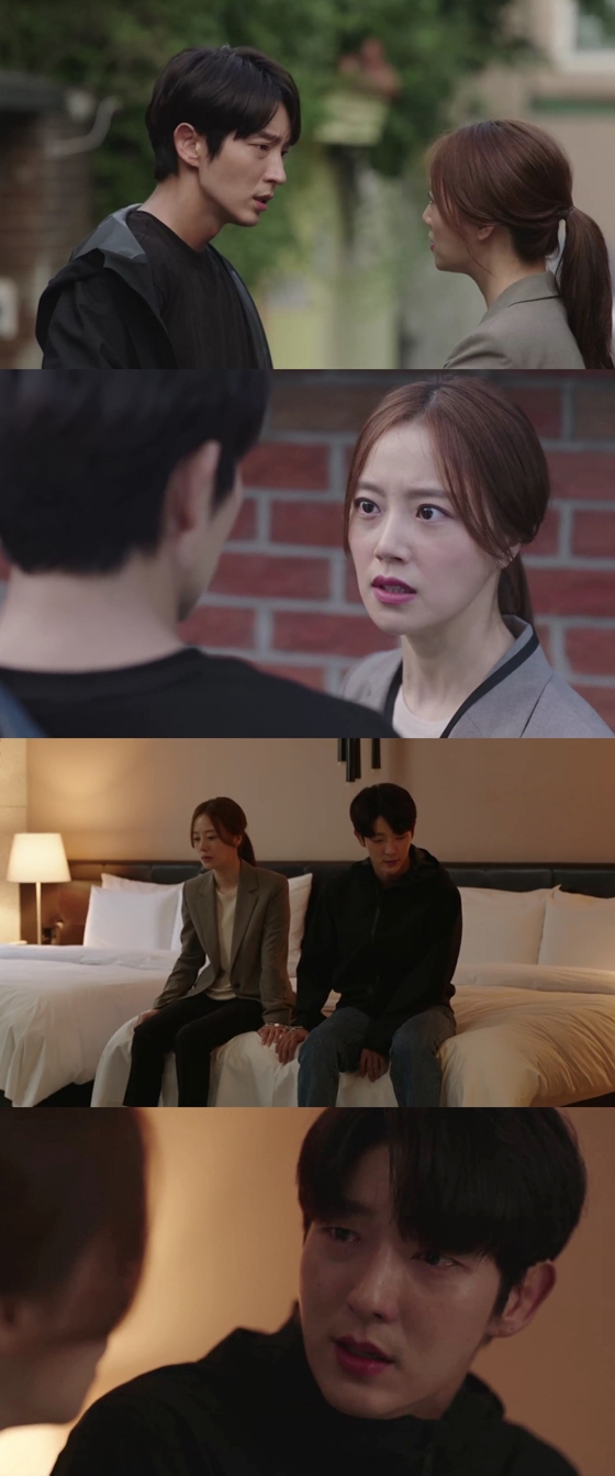 뿐만 아니라 집이 아닌 낯선 방안에 도착한 도현수와 차지원은 여전히 수갑으로 서로를 이어놓은 채 등을 돌리고 있다. 그러나 다시 차지원을 마주본 도현수의 표정에는 절절함이 감돌아 보는 이들의 마음까지 아리게 한다.