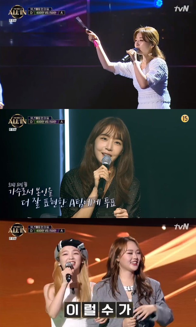 한편 '올인'은 장르 불문 실력파 보컬리스트들이 모여 베팅 대결을 통해 최후의 승자를 가리는 두뇌 게임 음악 쇼다. CJ ENM과 미국 콘텐츠 제작사 및 배급사 프로파게이트(Propagate)가 포맷을 공동 개발하고 제작한 프로그램이다.