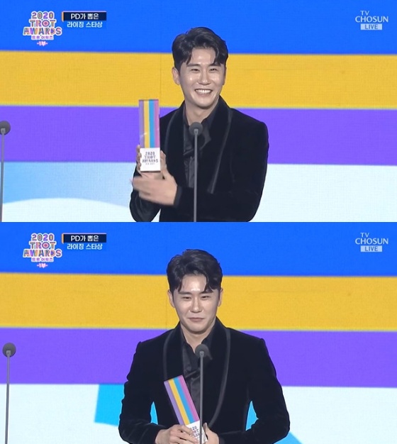 영탁은 1일 오후 열린 TV조선 트롯 시상식 '2020 트롯어워즈'에서 PD가 뽑은 라이징 스타상을 수상했다.