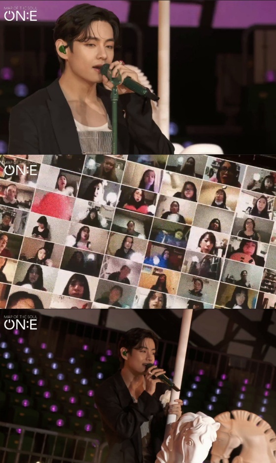 이러한 뷔의 바람은 10일 열린 온라인 콘서트 'BTS MAP OF THE SOUL ON:E'에서 이루어졌다. 온라인으로 만난 팬들은 뷔의 '이너차일드'를 떼창으로 불러 뷔에게 감동을 선사했다.