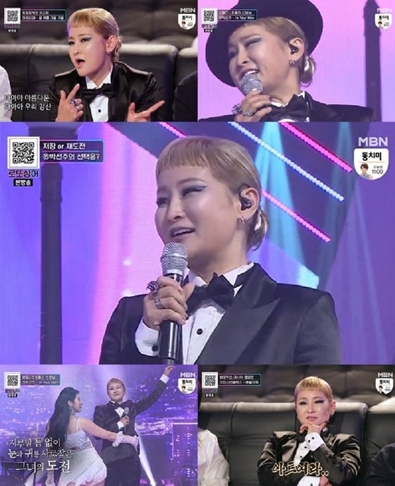 이날 박선주는 대기실부터 기립 떼창 유발로 가수들의 기운을 쓸어 모으며 긍정적 에너지를 발산했다. 무대에 오른 것만으로도 관객 심사위원과 예측단을 포스로 압도시킨 것.