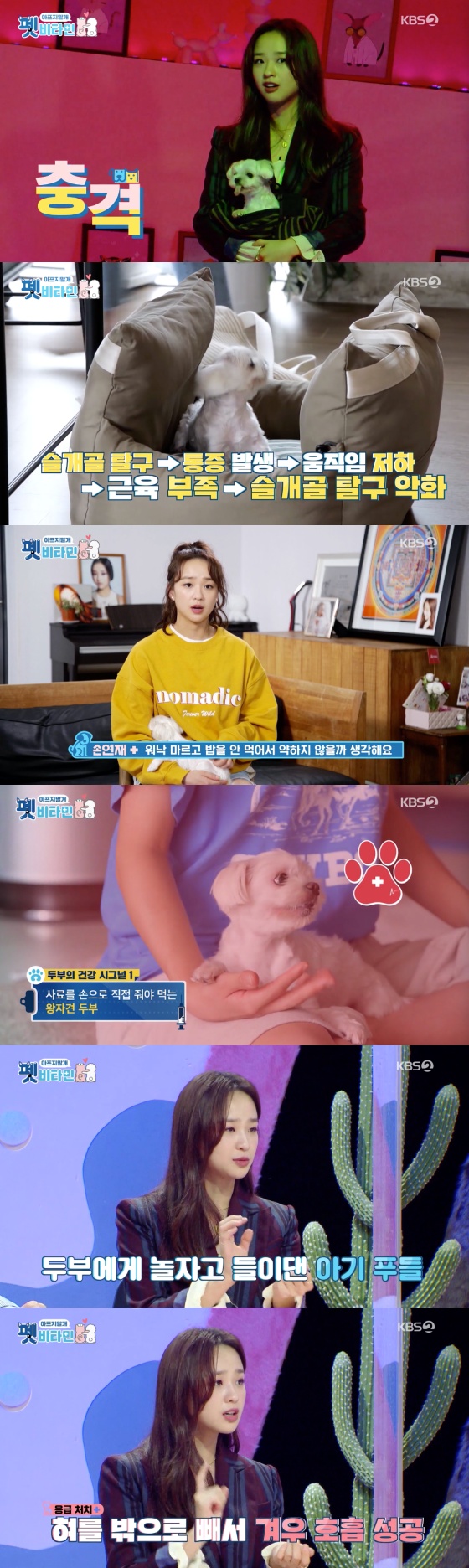 전 리듬체조 선수 손연재가 '펫 비타민'에서 반려견 두부 건강이 좋지 않다는 결과에 충격을 받았다.