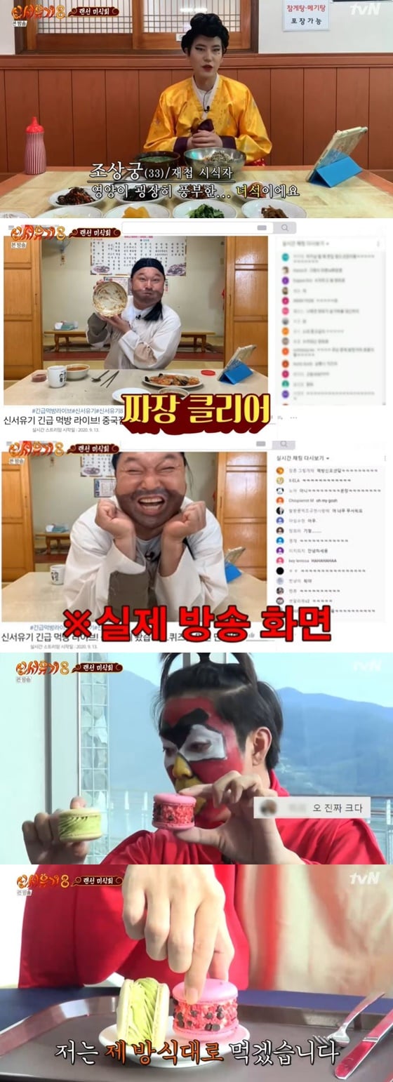 16일 '신서유기8' 2회 방송에서 음악 장학 퀴즈가 나오던 중 갑자기 방송이 중단됐다. 방송이 끊기고 난 뒤 지난주 방송된 '신서유기8' 1회 장면이 나왔고, 자막이 겹쳐 나오는 사고도 생겼다.