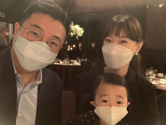 공개된 사진 속에는 결혼식장에 마스크를 쓰고 함께 앉아 있는 이지혜 부부와 딸의 모습이 담겼다. 마스크로도 가려지지 않는 행복한 미소가 시선을 끈다.