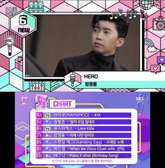 최근 발매된 임영웅의 새 싱글 'HERO(히어로)'는 지난 14일 방송된 MBC '쇼! 음악중심'에서 6위에 올랐다.