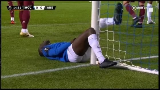 27일 열린 유로파리그 아스널과 몰데FK의 경기서 아찔한 장면이 나왔다.