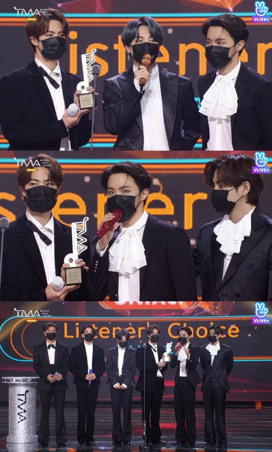 방탄소년단 지민은 "이 상은 음악을 좋아하는 리스너들께서 뽑아주셨는데, 굉장히 큰 상이라 생각한다. 이런 상황(코로나19)에서도 저희 음악 들어주셔서 감사하다. 많은 분들에게 위로 줄 수 있는 음악 만들겠다"라고 소감을 밝혔다.
