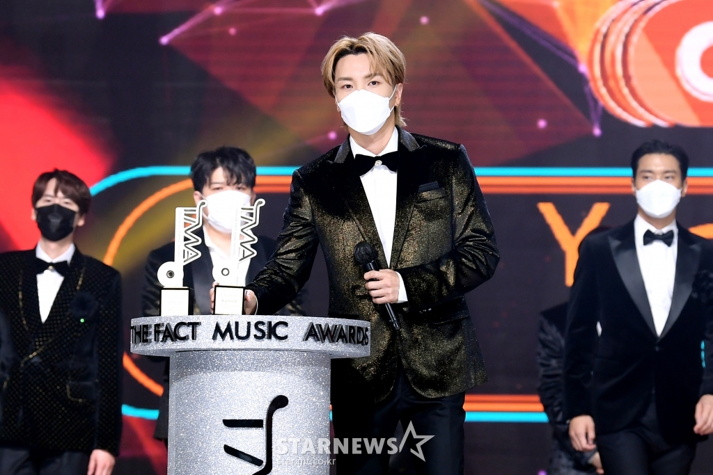 더팩트가 주최하고 팬앤스타(FAN N STAR)가 주관하는 '2020 더팩트 뮤직 어워즈(THE FACT MUSIC AWARDS, TMA)'가 12일 오후 열려 올해의 아티스트를 수상한 슈퍼주니어 이특이 수상 소감을 밝히고 있다.이번 '2020 더팩트 뮤직 어워즈'는 코로나19 확산을 방지하기 위해 철저하게 방역지침을 준수하고 팬과 아티스트의 안전을 위해 온택트(비대면을 뜻하는 언택트(Untact)에 온라인 연결(On)을 더한 방식) 방식으로 개최됐다.TMA에는 방탄소년단(BTS)을 비롯해 슈퍼주니어, 뉴이스트, GOT7(갓세븐), 몬스타엑스, 세븐틴, 강다니엘, 트와이스, 마마무, (여자)아이들, ITZY(있지), 스트레이 키즈(Stray Kids), 투모로우바이투게더, 에이티즈, 크래비티, 위클리, 더보이즈, 아이즈원, 제시 등 전 세계에서 최정상의 인기를 달리고 있는 K팝 아티스트들이 출연했다. 12일 오후 4시 레드카펫, 오후 6시 본 시상식이 방송되며 네이버 V LIVE 등을 통해 전세계 30여개국에 동시 중계됐다./사진=더팩트 뮤직 어워즈 제공
