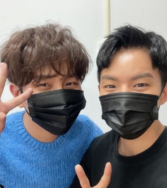 사진 속에는 나태주와 김수찬이 같은 마스크를 쓰고 다정히 셀카를 찍은 모습이 담겨 있다.