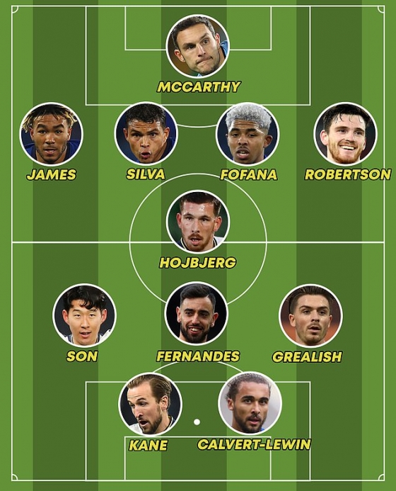 포백은 왼쪽부터 앤디 로버트슨(26·리버풀), 웨슬리 포파나(20·레스터 시티), 티아고 실바(36), 리스 제임스(21·이상 첼시)가 자리했다. 골키퍼는 알렉시 맥카시(31·사우스햄튼)가 이름을 올렸다.