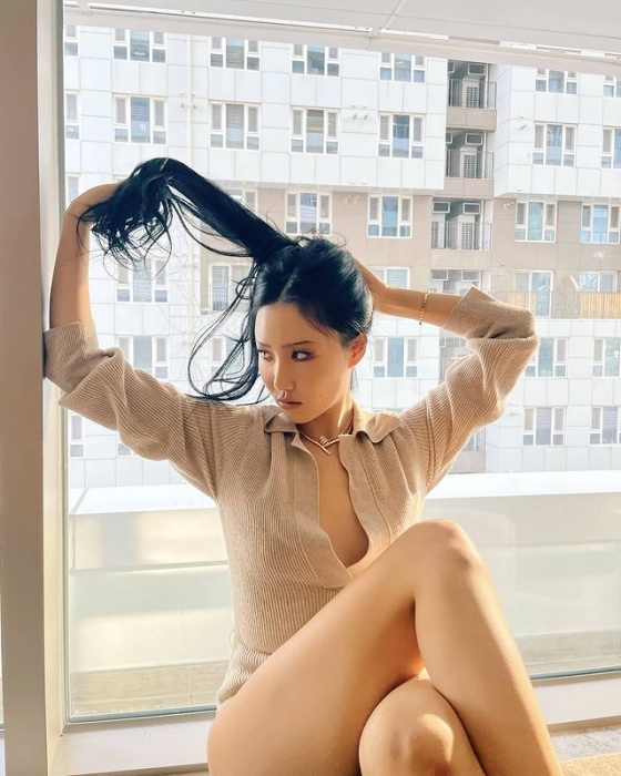 사진 속 화사는 창가에 앉아 다양한 포즈를 짓고 있다. 가슴 깊이 파인 니트 패션과 화사의 당당하고 카리스마 넘치는 눈빛이 시선을 사로잡는다.