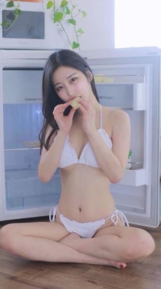 게시물 속 김나정은 화이트 비키니 패션을 소화하고 여러 포즈를 취하고 있다. 김나정은 이에 "냉장고와 초초쪼쪼초 나정이 앙"이라는 글도 게재했다.