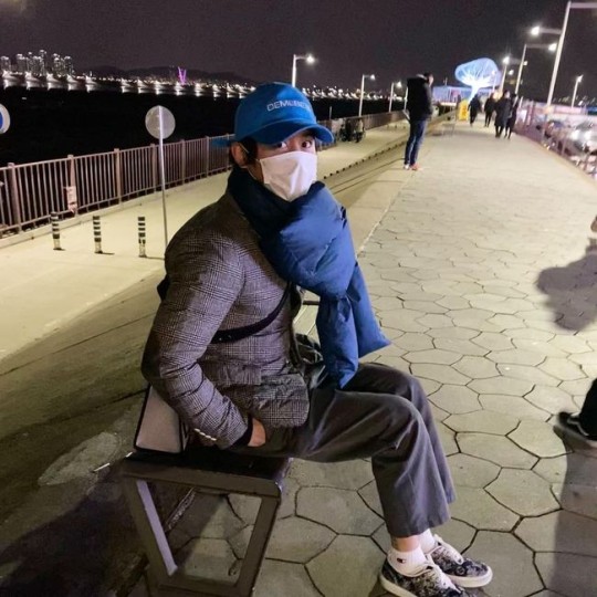 사진 속 김상혁은 자신이 운영 중인 가게 앞에서 앉아 있는 모습이다.