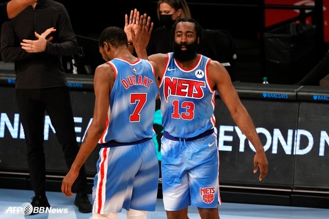 '털보' 제임스 하든(32)이 브루클린 네츠 데뷔전에서 트리플 더블을 작성했다. 케빈 듀란트(33)도 올 시즌 개인 최다 득점을 퍼부었다.