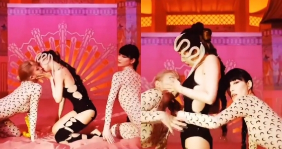 가수 현아가 파격적인 신곡 뮤직비디오 비하인드 컷을 공개했다.