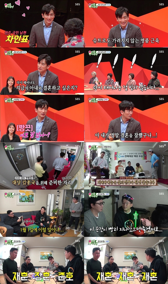 한편, 이날 '미우새' 스페셜 MC로는 국민 남편이자 원조 사랑꾼 차인표가 출연해 어머니들의 뜨거운 환영을 받았다. 서장훈이 아내 신애라가 '미우새'에 출연했을 때 차인표와 전화통화 중 '사랑의 유효기간은 둘 중 한 명이 눈을 감을 때까지다'라고 말한 내용을 언급하자 차인표는 "그 말을 곱씹어보니까 내가 잘못 얘기한 것 같다. 둘 중 한 명이 눈을 감으면 다른 한 명은 어떻게 될지 모르니까 둘 다 눈 감는 날로 정정하겠다"고 답변해 눈길을 끌었다.