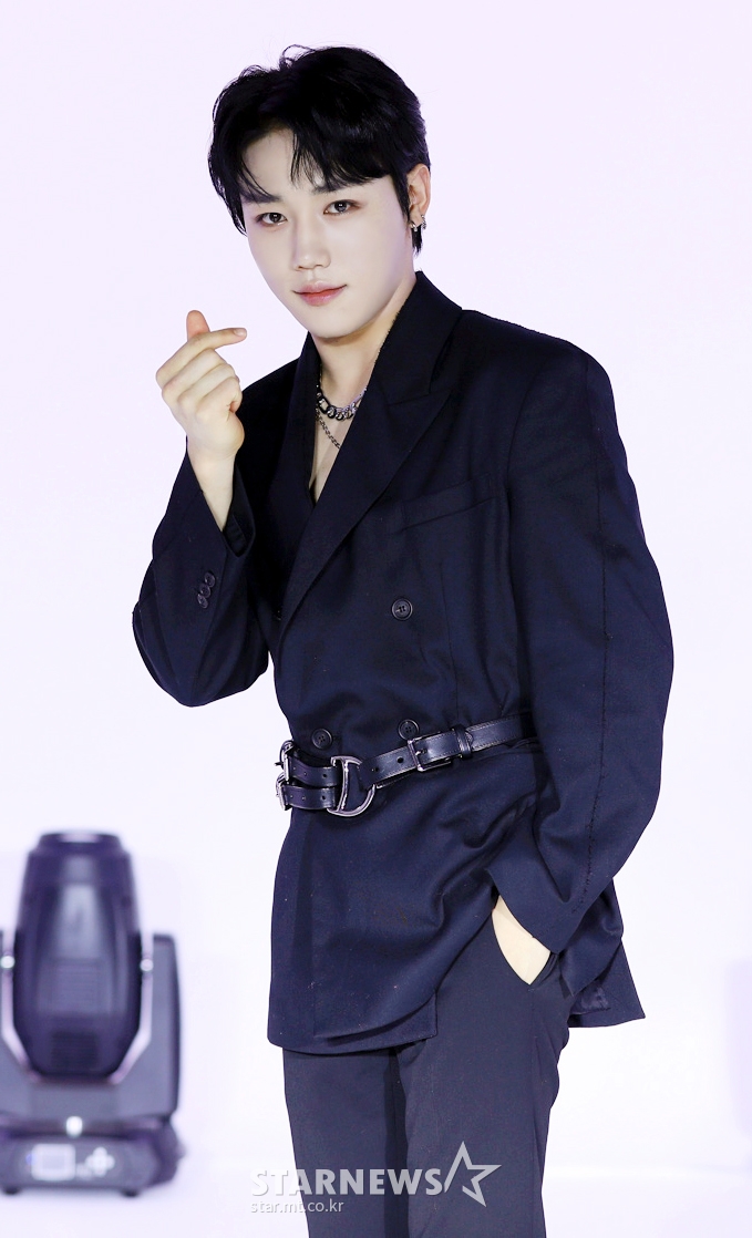 그룹 골든차일드 이장준이 25일 오후 온라인으로 진행된 다섯 번째 미니앨범 'YES.' 발매 기념 쇼케이스에서 포즈를 취하고 있다.