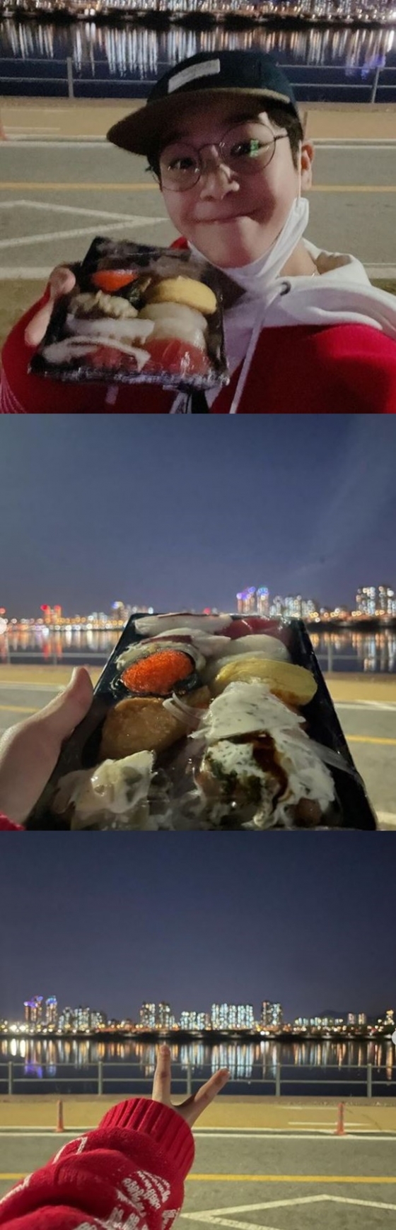 정동원은 25일 자신의 인스타그램에 "한강에서의 초밥 #한강공원 #초밥"이라는 글과 함께 세 장의 사진을 공개했다.