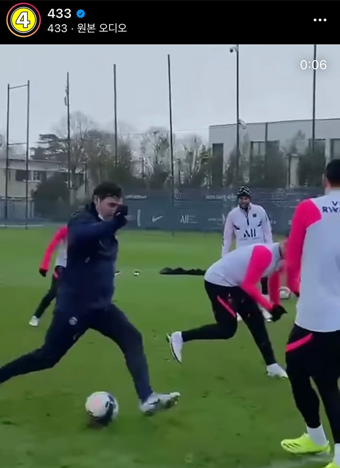 하지만 매번 딱딱한 분위기를 조성하는 건 아니었다. 포체티노 감독은 선수들과 한데 섞여 공 돌리기 훈련을 함께했다. 술래였던 그는 디 마리아에게 공이 간 순간 빠르게 달려들었다. 디 마리아는 벌어진 다리 사이를 놓치지 않고 공을 통과시켰다.